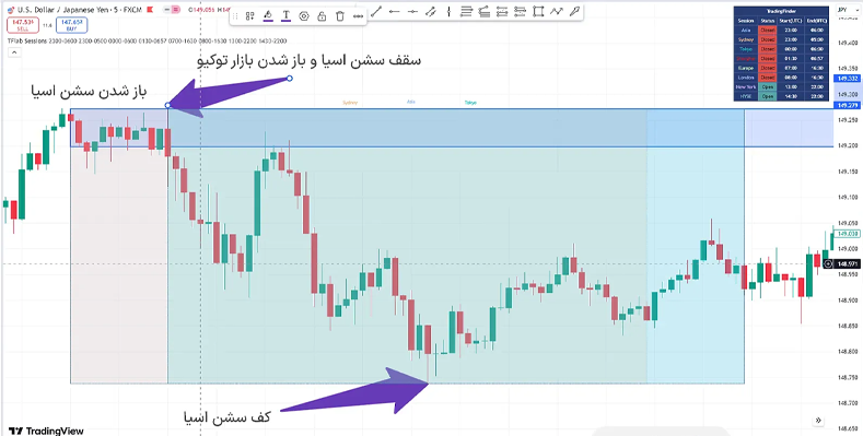 اندیکاتور سشن آسیا در تریدینگ ویو