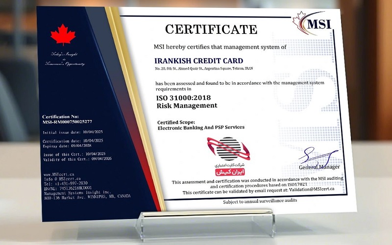 شرکت کارت اعتباری ایران کیش موفق شد در زمینه مدیریت ریسک، یک گواهینامه بینالمللی بگیرد و دو گواهینامه دیگر خود را نیز تمدید کند.