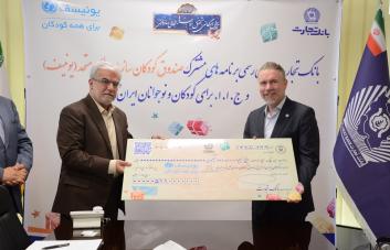 علیرضا حاجعلی، رئیس هیاتمدیره بانک تجارت طی مراسمی کمک پنج میلیارد و 110 میلیون ریالی کارکنان بانک تجارت را به ویل پارکس نماینده یونیسف در ایران تحویل داد.