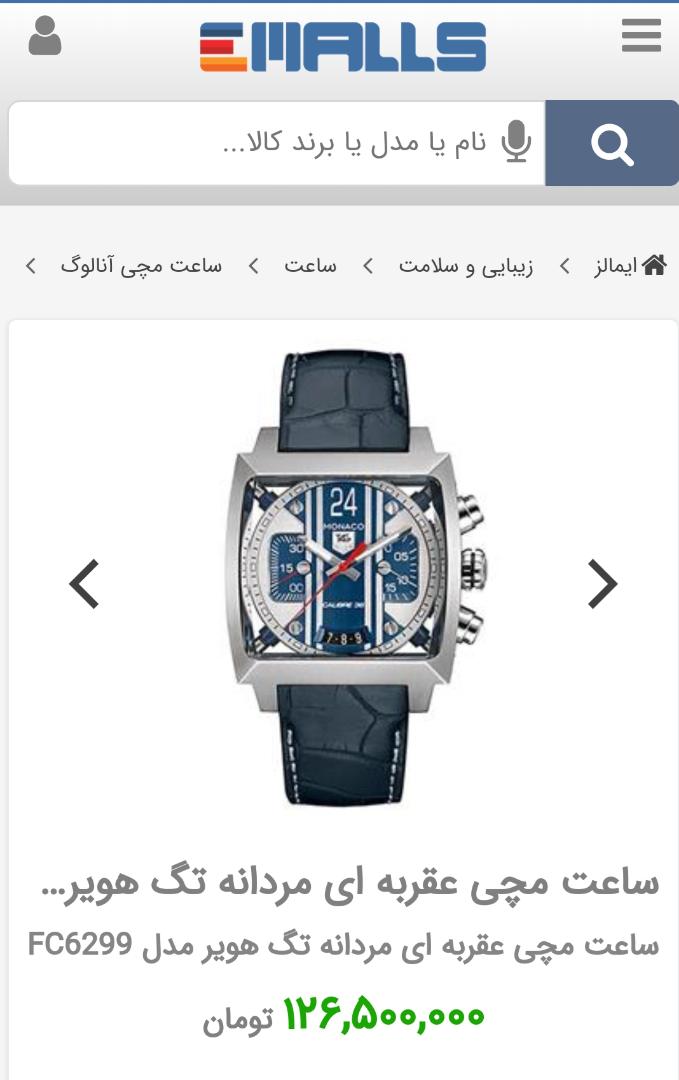 در حالی که قیمت یک ساعت مچی لوکس با برند «تگ هویر» در سایت‌های ایرانی 126 میلیون و 500 هزار تومان اعلام شده همین ساعت مردانه در سایت‌های معتبر خارجی بین 9 هزار و 495 تا 12هزار و 228 دلار قیمت‌گذاری شده است.