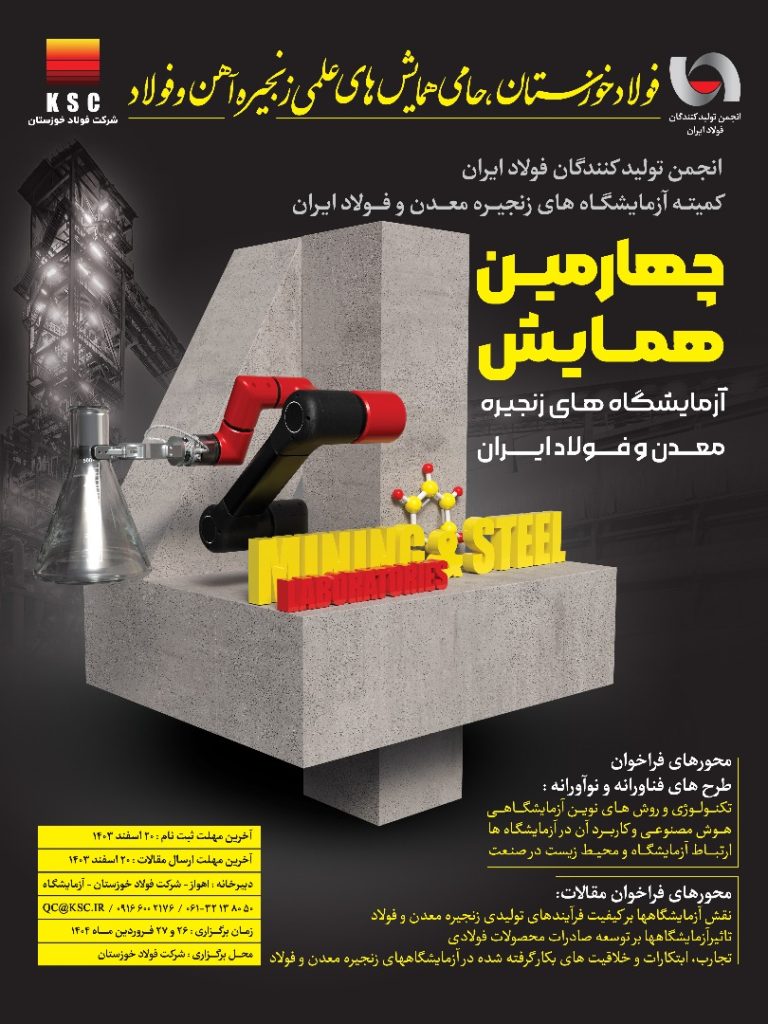 چهارمین همایش آزمایشگاه‌های زنجیره معدن و فولاد ایران به میزبانی فولاد خوزستان در روزهای 26 و 27 فروردین‌ 1404 برگزار می‌شود.