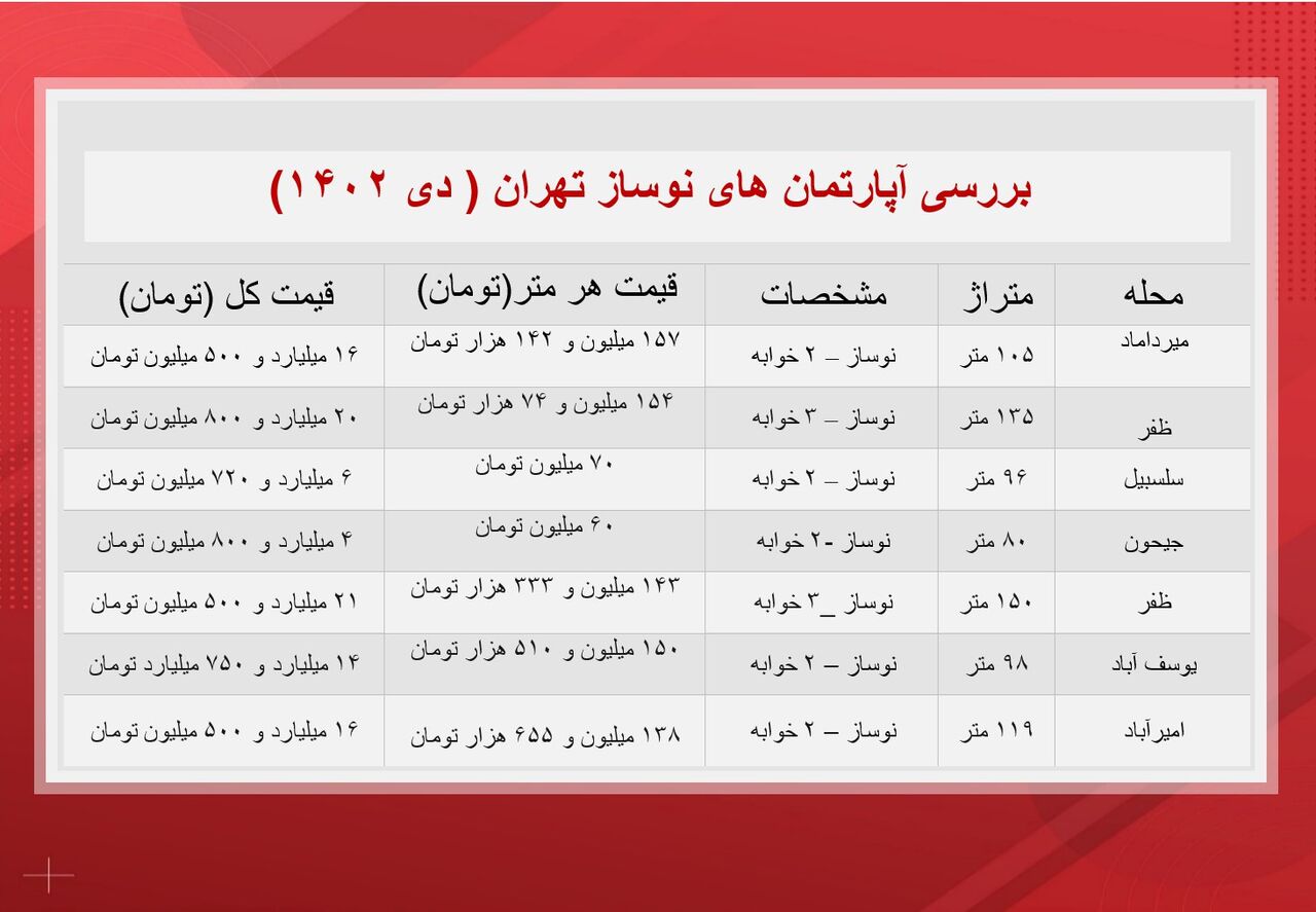 قیمت آپارتمان نوساز در محلات مختلف تهران