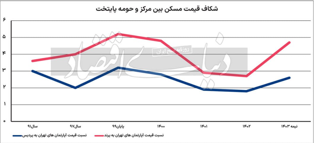 رکود خرید مسکن در حومه باعث شده در پرند و پردیس قیمتها نسبت به ابتدای سال ۵ تا ۷ درصد افت کند. تحت تاثیر این کاهش، نسبت قیمت آپارتمانهای تهران به پردیس از ۱.۸ برابر به بالای ۲ برابر و برای پرند نیز از حدود ۳ برابر سال گذشته به بالای ۴ برابر رسیده است.