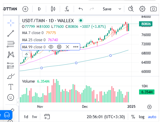 تتر بالاترین نرخ قیمت خود را به عنوان سقف جدید در چند روز گذشته در محدود 81720 تومانی ثبت کرد. در ادامه این رمزارز در دو روز متوالی کاهش قیمتی را شاهد بود. این کاهش قیمتی با توجه به کندل‌های اخیر در چارت تنها یک اصلاح سریع به نظر می‌رسد و احتمالا تتر تلاش خواهد کرد تا خود را به محدوده 83 هزار تومان رسانده و خود را در بالای 80 هزار تومان و در این کانال قیمتی تثبیت کند.