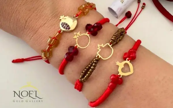 این دستبند بافتنی زیبا مختص شب یلدا طراحی شده و در ساخت آن از یک انار طلایی در وسط و مهرههای قرمز تراش خورده در درون این انار استفاده شده است. به این ترتیب این هدیه به یک ساخته مینیمال و ظریف تبدیل شده است.