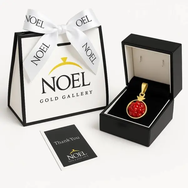 این پلاک انار از طلای ۱۸ عیار ساخته شده و طراحی آن به‌گونه‌ای است که دانه‌های انار با ظرافت بالا و با استفاده از نگین‌هایی که به‌صورت یکپارچه از طلا کسر شده‌اند اجرا شده‌اند. این ویژگی باعث شده در کنار زیبایی بصری، دوام و ارزش ذاتی پلاک نیز حفظ شود. ترکیب رنگ طلا با جزئیات قرمز و سبز، حال‌وهوای یلدایی را به‌خوبی منتقل می‌کند.