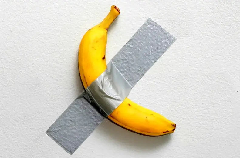 اثری هنری شامل یک موز که با چسب به دیوار چسبانده شده ، با قیمت ۱ تا ۱/۵ میلیون دلار به حراج گذاشته شده است.