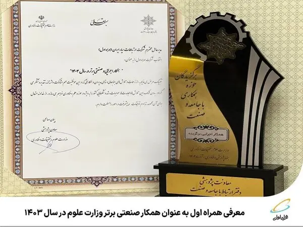 به گزارش اداره کل ارتباطات شرکت ارتباطات سیار ایران، همراه اول به عنوان نخستین و بزرگترین اپراتور تلفن همراه کشور در چهارمین روز جشنواره ملی هفته پژوهش همزمان با برگزاری ششمین نمایشگاه تقاضای ساخت و تولید ایرانی (تستا)، در آیین تقدیر از برگزیدگان حوزه ارتباط با جامعه و صنعت سال ۱۴۰۳، موفق به کسب عنوان «همکار اجرایی و صنعتی برتر» از سوی وزارت علوم، تحقیقات و فناوری شد.