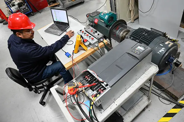اینورتر در شرایط شبیه سازی شده صنعتی تست می شود تا عملکرد صحیح آن نیز تأیید گردد.