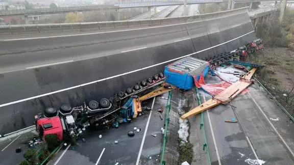 تصادف وحشتناک تریلی با پل (ویدیو)
