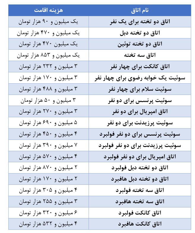 هزینه اقامت در هتل سینور مشهد 24 شهریور 1401