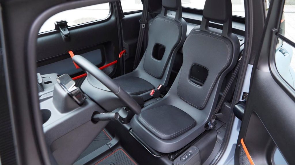 سیتروئن امی به خاطر سرعت کمش مجبور نیست مانند یک خودرو متعارف و معمولی مقررات ایمنی را رعایت کند. شاید تنها چیزی که این خودرو به سرنشینانش می دهد یک بدنه قرص و محکم است که به آن ها حس ایمنی القا کرده و از آن ها در برابر باد و باران محافظت می کند. البته این امکان وجود ندارد که وقتی سوار آن هستید مثل موتورسیکلت به زمین بخورید و داشتن دو صندلی به همراه کمربند ایمنی خودش غنیمتی محسوب می شود. صندلی های سفت و سواری خشک سیتروئن امی بر روی آن چرخ های کوچک، به معنای این است که برای تردد در خیابان های شهری طراحی شده است و با آن نمی توان به دل جاده زد. البته با سرعت کم و 45 کیلومتر بر ساعتی این خودرو، عاقلانه هم نیست که ریسک کرد و با آن به جاده رفت.