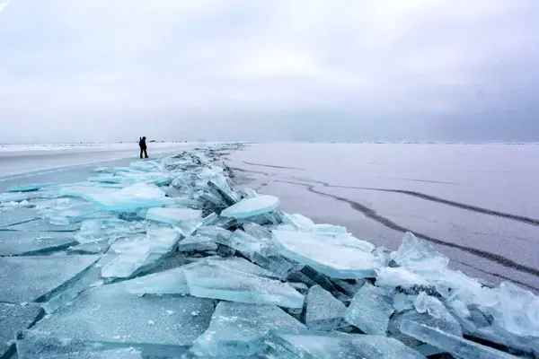 قسمتی از دریای خزر در شمال کشور یخ زد (ویدیو)