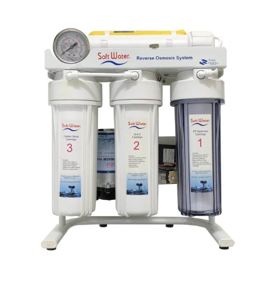 سافت واتر یکی از قدیمیترین برندهای تصفیه آب در دنیا است و دارای استانداردهای جهانی است. این محصول با مخزن 16 لیتری در طی شش مرحله آب را تصفیه میکند. فیلتر اول برای حذف کدورت آب، گل و لای و شن و ماسه عمل میکند. فیلتر دوم در جهت حذف کلر، زنگ آهن و بوهای نامطبوع عمل میکند. در مرحله سوم کربن فعال باعث تکمیل فرآیندهای انجام شده در مرحله اول و دوم میشود. فیلتر چهارم نیز باعث حذف املاح مضر و مود غیر آلی حلشده و ویروسهای موجود در آب میشود. در نهایت فیلتر پنجم طعم و بو آب را مطلوب کرده و فیلتر آخر مینرالها و املاح معدنی را به آب اضافه میکند. این دستگاه به قیمت چهار میلیون تومان قابل خرید است.