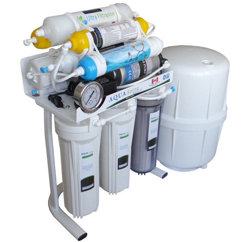 این دستگاه تصفیه آب خانگی هشت مرحلهای است و مخزن آن 16 لیتر ظرفیت دارد. سه مرحله اول فیلتراسیون در جهت حذف ذرات معلق مانند گرد و خاک، زنگ آهن، کلر و سموم شیمایی و رنگهای صنعتی با جرم یک تا پنج میکرون انجام میشود. مرحله چهارم با استفاده از فیلتر ممبران اسمز معکوس انجام میشود که انواع املاح و نمکهای معدنی و مواد معدنی از آب حذف میشوند. مرحله پنجم این دستگاه با استفاده کربن نهایی انجام میشود. در فیلتر ششم معدنیساز جهت اضافه کردن املاح معدنی مورد نیاز بدن که در مرحله چهارم حذف شدهاند انجام میشود. در فیلتر هفتم آب به آب قلیایی تبدیل میشود و در نهایت در فیلتر آخر محافظ به عنوان جلوگیری از ورود ذرات ذغال به لایههای ممبران عمل میکند. این دستگاه به قیمت چهار میلیون تومان قابل تهیه است.