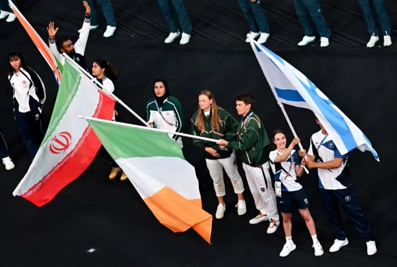 از سوی دیگر، فاطمه مجلل در رویینگ تنها پرچمدار ایران در اختتامیه بازیهای المپیک بود، در حالی که کمیته ملی المپیک پیش از این، از حضور آرین سلیمی قهرمان تکواندو به عنوان پرچمدار دوم در مراسم اختتامیه خبر داده بود.